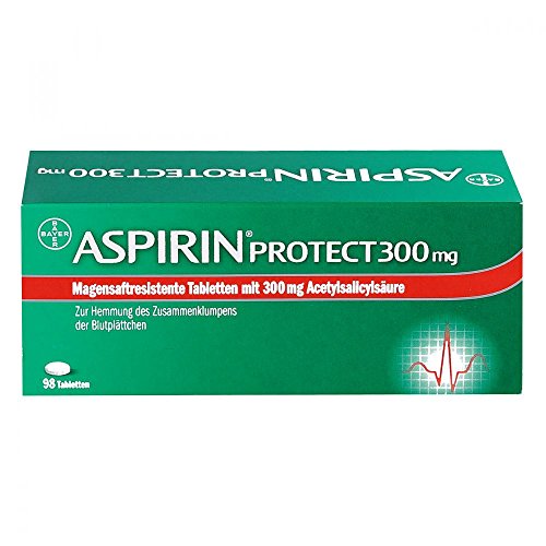 Anwendungsgebiet von Aspirin Protect 300 mg magensaftresistent Tabletten (Packungsgröße: 98 stk)Aspirin Protect 300 mg magensaftresistent Tabletten (Packungsgröße: 98 stk) werden als Teil der Standardtherapie zur Vorbeugung eines erneuten Myokardinfarkts (Reinfarktprophylaxe) eingesetzt. Aspirin Protect 300 mg magensaftresistent Tabletten (Packungsgröße: 98 stk) eignen sich nicht zur Therapie von Schmerzzuständen. Wirkungsweise von Aspirin Protect 300 mg magensaftresistent Tabletten (Packungsgröße: 98 stk)Acetylsalicylsäure ist ein Hemmstoff der Cyclooxygenase. Neben anderen Wirkungen hemmen Aspirin Protect 300 mg magensaftresistent Tabletten (Packungsgröße: 98 stk) die Thrombozytenaggregation irreversibel, verbessern so die Fließeigenschaften des Blutes und helfen Gefäßverschlüssen vorzubeugen. Aspirin Protect 300 mg magensaftresistent Tabletten (Packungsgröße: 98 stk) haben eine spezielle Ummantelung, so dass der Wirkstoff erst im Dünndarm freigesetzt wird. Diese besondere Darreichung verbessert die Magenverträglichkeit der Tabletten wesentlich.Wirkstoffe1 Tablette Aspirin Protect 300 mg magensaftresistent Tabletten (Packungsgröße: 98 stk) enthält als wirksamen Bestandteil: 300 mg Acetylsalicylsäure als sonstige Bestandteile: Eudragit[R]L 30 D-55, Talkum, Triethylcitrat, Cellulosepulver, Maisstärke, Polysorbat 80, NatriumdodecylsulfatGegenanzeigenAspirin Protect 300 mg magensaftresistent Tabletten (Packungsgröße: 98 stk) sollten nicht angewendet werden bei: bekannter Überempfindlichkeit gegen einen der oben genannten Inhaltsstoffe akuten Magen- u