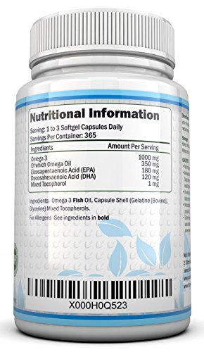 Nu U Omega 3 Fischöl mit hochentwickelter Formel Omega 3 Fischöl ist sehr bekannt für seine gesundheitlichen Vorteile. Der menschliche Körper ist nicht in der Lage diese essenziellen Fettsäuren selbst zu produzieren; sie können nur mittels bestimmter ölige Fischsorten und Ergänzungsmittel aufgenommen werden. Omega 3 unterstützt: ✔ Die Senkung des Blutspiegels ✔ Gehirnfunktion ✔ Sehvermögen ✔ Herz-Kreislauf Gesundheit ✔ Die Heilung von Entzündungen des Harn- und Reproduktionssystems (Blase, Prostata, Nieren) bei Männern ✔ Hormonspiegel ✔ Gesunde Nägel und Haut ✔ Bewegungsapparat Warum sollten Sie Omega 3 Fischöl-Kapseln von Nu U kaufen? *100% GELD-ZURÜCK-GARANTIE – Wir werden keine weiteren Fragen stellen: Fühlen Sie sich besser oder fordern Sie Ihr Geld zurück. *HOCHENTWICKELTE FORMEL – Unser Omega 3 Fischöl Nahrungsergänzungsmittel besteht aus 1000mg, wurde mit maximaler biologischer Verfügbarkeit entwickelt und ist zudem leicht zu schlucken. *VERSORGUNG BIS ZU 12 MONATE – Hervorragendes Preis-Leistungs-Verhältnis. Ganz einfach und ohne nachbestellen zu müssen für ganze ZWÖLF Monate. *PRODUZIERT IN GROSSBRITANNIEN – Nach höchsten Qualitätsstandards in der Welt produziert. Wir füllen das Endprodukt NICHT einfach in Großbritannien ab, wie manch anderer Anbieter, auch unsere Produktion erfolgt zu 100% in Großbritannien.