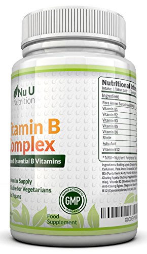 Vitamin B-Komplex von Nu U mit hochentwickelter RezepturUnser Vitamin B-Komplex beinhaltet alle 8 Vitamin B-Arten. Dazu gehören Thiamin (Vit B1), Riboflavin (Vit B2), Niacin (Vit B3), Pantothensäure (Vit B5), Pyridoxin (Vit B6), Biotin (Vit B7), Folsäure (Vit B9) und Methylcobalamin (Vit B12). Warum sollten Sie sich für den Vitamin B-Komplex von Nu U entscheiden? * 100 % GELD-ZURÜCK-GARANTIE- Wir stellen keine Fragen, entweder Sie fühlen sich besser oder Sie erhalten Ihr Geld zurück. * HOCHENTWICKELTE REZEPTUR – All 8 Vitamin B-Arten in einer Tablette pro Tag. Thiamin (Vit B1), Riboflavin (Vit B2), Niacin (Vit B3), Pantothensäure (Vit B5), Pyridoxin (Vit B6), Biotin (Vit B7), Folsäure (Vit B9) und Vit B12. REDUZIERT Müdigkeit und Erschöpfung, erhöht die geistige Leistungsfähigkeit und wirkt sich in vieler Hinsicht positiv auf die Gesundheit aus. * 6 6-MONATS-VERSORGUNG- Erstaunliches Preis-Leistungsverhältnis. Wir machen es Ihnen ganz einfach, Sie brauchen SECHS volle Monate lang keinen Nachschub zu bestellen. * IN GROSSBRITANNIEN HERGESTELLT- Nach den höchsten Produktionsstandards der Welt hergestellt.
