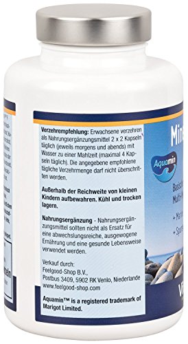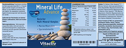 Ist Ihr Körper zu sauer ? Sauer macht krank!Mineral Life Advance ist ein  neuartiges u. natürliches Mineralstoffpräparat (laktosefrei) mit  AquaminTM (pflanzliche, marine Mineralien), das unter anderem den  Säure-Basen-Haushalt im Körper regulieren helfen und somit bei vielen Krankheiten/Beschwerden normalisierend wirken kann. Es kann zudem die  Körperentgiftung fördern und die  Verdauung normalisieren helfen. Auch Sportler können einen sportbedingten Mineralverlust mit Mineral Life Advance ausgleichen. Was ist „Aquamin“? Im Unterschied zu anderen mineralischen Quellen, die in Vitalstoff-Präparaten verwendet werden, stammt AquaminTM zu 100% aus Algen, die die Mineralien und Spurenelemente aus dem umgebenden Meerwasser absorbieren und ist somit 100% pflanzlichen Ursprungs. Neben den Hauptbestandteilen  Kalzium und Magnesium, sind  72 weitere mineralische Spurenelemente darin enthalten, z.B. Eisen, Mangan, Zink, Kupfer, Kalium und Selen. Die marinen Spurenelemente werden vom Körper besonders gut aufgenommen, was in unzähligen  medizinischen Studien nachgewiesen wurde. Die Vorteile von Mineral Life Advance – Hohe Bioverfügbarkeit der einzelnen Inhaltsstoffe (= besonders gute Wirksamkeit) – Beinhaltet als einziges Produkt dieser Art AquaminTM – Enthält Mineralien/Spurenelemente in organischer Form (= Besonders gute Aufnahme im Körper; Konkurrenzprodukte enthalten oft „metallische“ Mineralverbindungen) – Spezielle Zusammensetzung der Inhaltsstoffe für ein ausgeglichenes Säure-Basen-Verhältnis – Kann bei einer Vielzahl von Krankheiten/Beschwerden normalisierend helfen – Mineral Life Advance ist höher dosiert als Konkurrenzprodukte. – Sehr gutes Preis-Leistungs-Verhältnis.