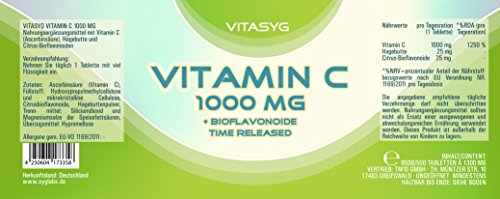Eine Dose Vitasyg Vitamin C 1000mg enthält 500 Portionen. 1 Portion entspricht 1 Tablette.