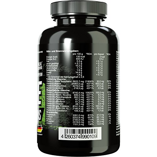 ZEC+ NUTRITION® Antioxidantien und Vitamine Kapseln ALL IN ONE ANTIOXIDANT & VITAMIN 120 StückAntioxidantien & VitamineAll-in-One – Antioxidantien und Vitamine in einer Kapsel!Das neue All-in-one Vitaminprodukt von Zecplus hat es in sich: Antioxidantien, Vitamine und Mineralstoffe – alles in hoher Dosis – alles in einer Kapsel!Die sorgfältige Herstellung dieser vitalen und harmonischen Rezeptur und die hohe Qualität garantiert Euch eine echte Power-Kapsel zur Nahrungsergänzung, welche die wichtigsten Vitamine und die Antioxidantien OPC und Resveratrol enthält. Zusätzliche Mineralien und vor allem Piperin sorgen für eine bessere Bioverfügbarkeit dieser Antioxidantien und Vitamine. Piperin erhöht die Resorption im Magen-Darm-Bereich unter anderem durch eine erhöhte Sekretion und hilft dem Körper deshalb die Vielzahl an Vitaminen optimal aufzunehmen.Resveratrol – Ein Star unter den AntioxidantienWenn schon Wikipedia zu dem Antioxidant Resveratrol schreibt: In-vitro-Studien haben Hinweise auf eine mögliche Wirksamkeit gegen Krebszellen erbracht, zeigt dies, dass Resveratrol, neben seinen positiven, bis hin zu lebensverlängernden! Eigenschaften, bei den Antioxidantien eine besondere Rolle spielt. Wie üblich ist bei ZEC+Resveratrol in hoher Dosierung enthalten – 100 mg pro Kapsel!Die bekannten Vitamine A, B (acht Arten), C, D, E und das nicht so bekannte Vitamin K (Knochenstoffwechsel, Zellschutz, Gerinnungs-Regulanz) sind ebenso enthalten, wie das natürliche Antioxidant OPC. Die Dosierung wurde so gestaltet, dass Ihr mit einer Kapsel 50% der empfohlenen Tagesdosis nach RDA (Recommended Daily Allowances) erhaltet. Deshalb werden auch zwei Kapseln am Tag empfohlen. Natürlich müssen wir darauf hinweisen, das dieses Vitaminprodukt kein Ersatz für eine ausgewogene und abwechslungsreiche Ernährung darstellt.Qualität MADE IN GERMANY – Nur Original von Zec+ Nutrition®